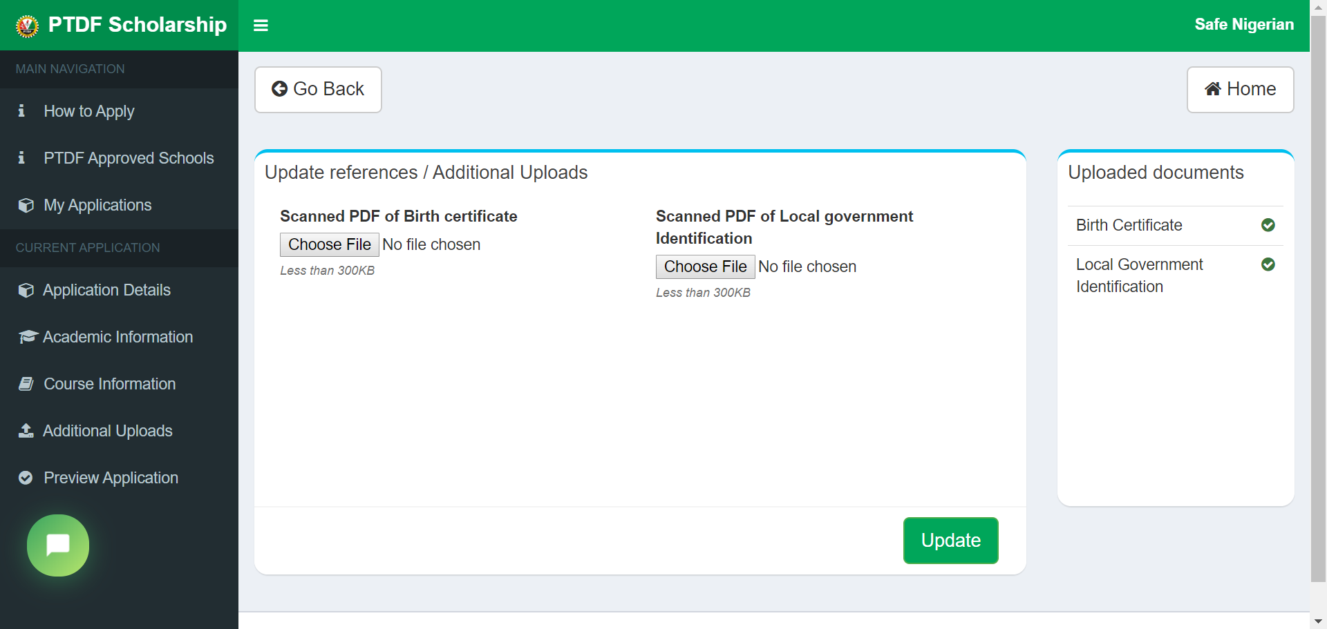 Additional Uploads, you are required to upload additional documents; birth certificate, LGA certificate,